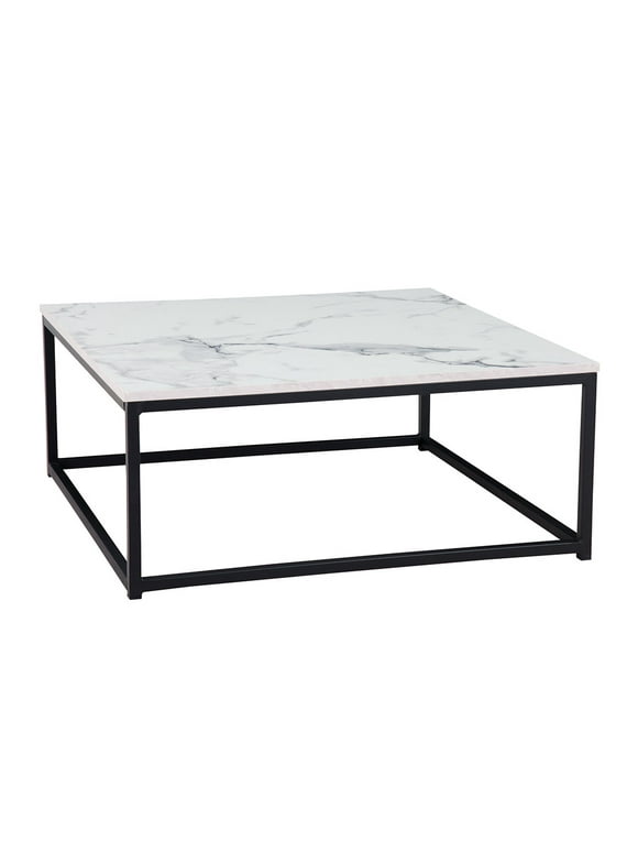 Amazon Com Roomfitters 17 7 Faux Marble Square End Table For Living Room Modern Square Side Table Marble Nightstand For Bedroom Square Sofa Table Cocktail Table Bedside Table Black Metal Frame Home