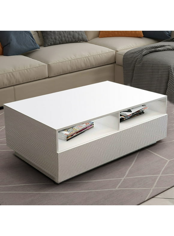 Rectangular High Gloss Coffee Table Modern Led Coffee Table For Living Room White Walmart Com